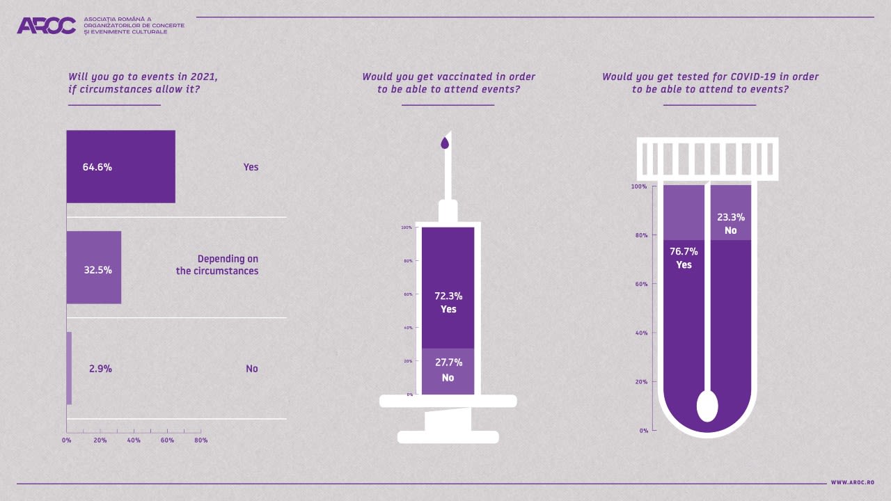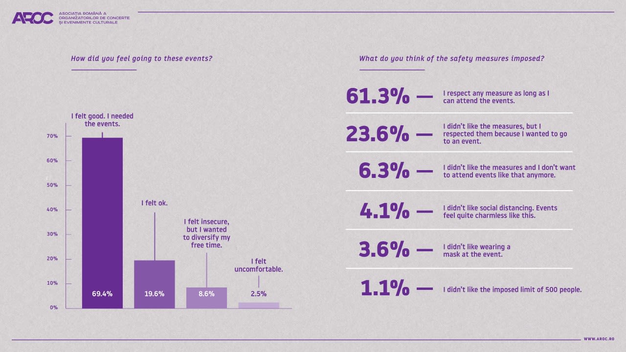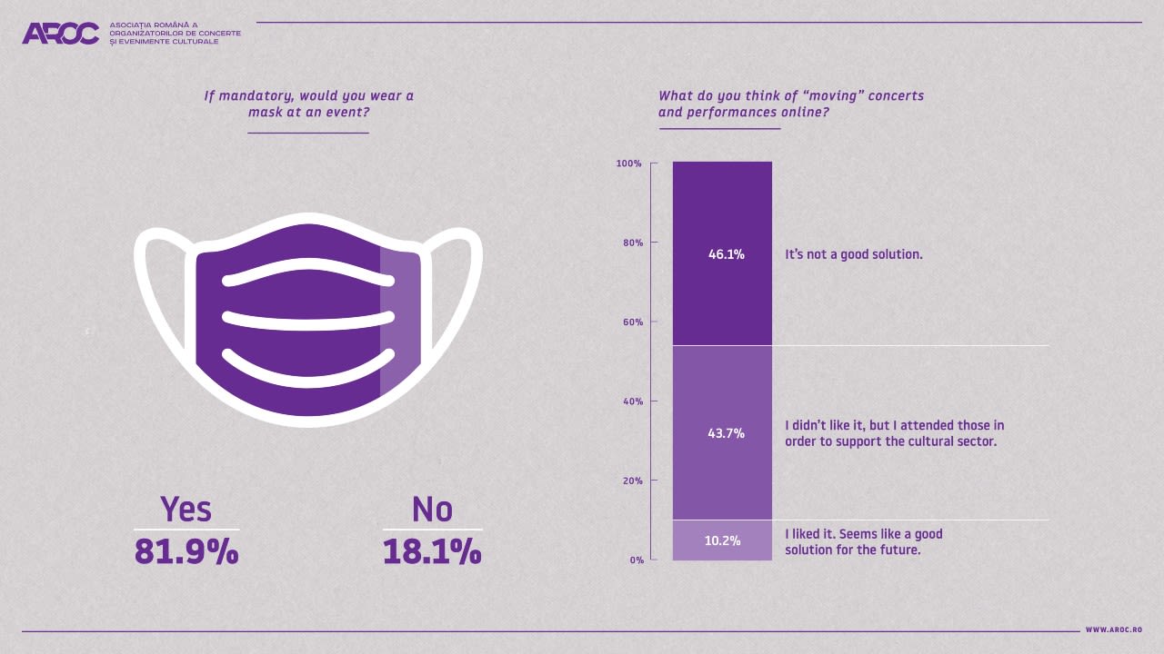 Exactly one year after the onset of the pandemic, Romanian Concert & Cultural Events Organizers Association (AROC) is releasing the results of a study concluded on a representative selected audience: event participants.